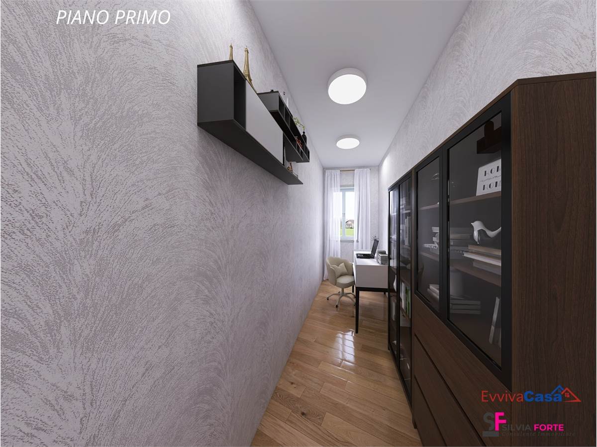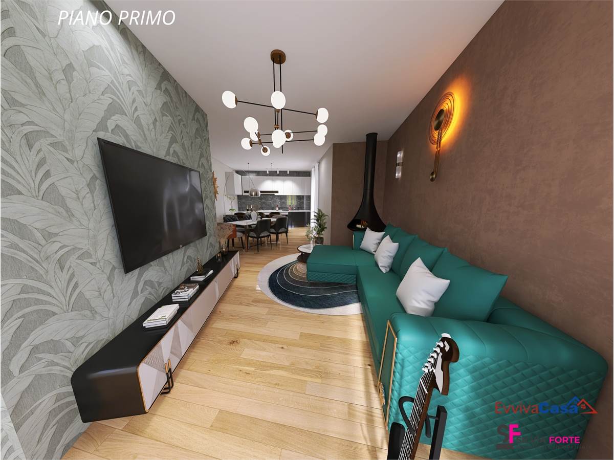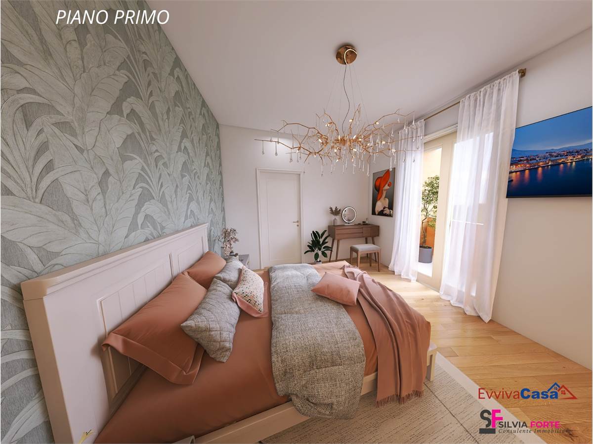 Il primo piano ospita un secondo appartamento di circa 104 mq, anch’esso con accesso indipendente, caratterizzato da ambienti luminosi e ben distribuiti. La zona giorno, in un unico ambiente accogliente, si apre su una splendida terrazza panoramica di oltre 30 mq, ideale per pranzi all’aperto e momenti di relax con vista sugli Appennini. Completano il piano due camere da letto, di cui una con balconcino, due bagni, uno con balcone, un ripostiglio e un sottotetto.