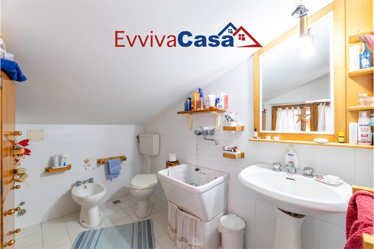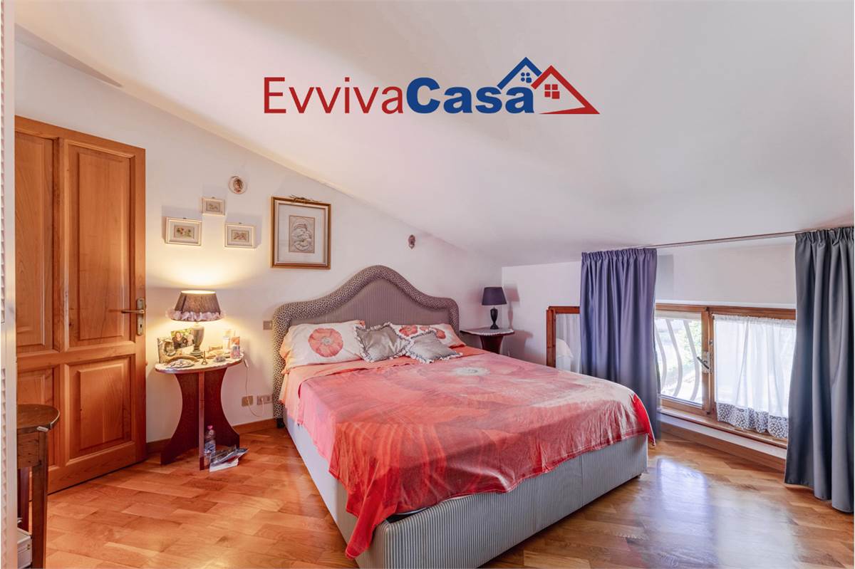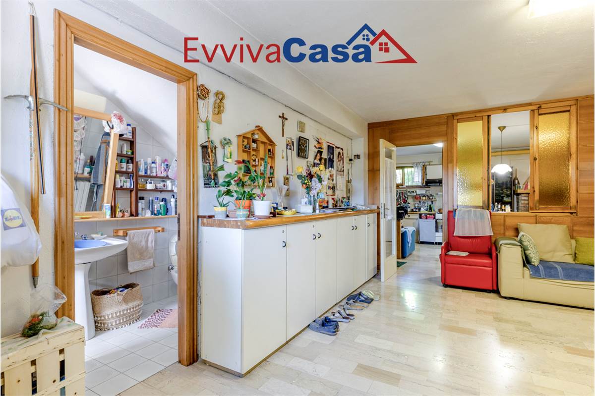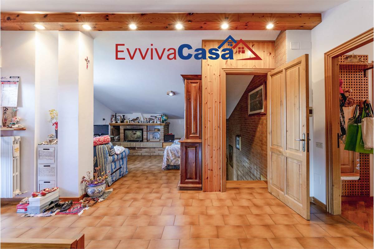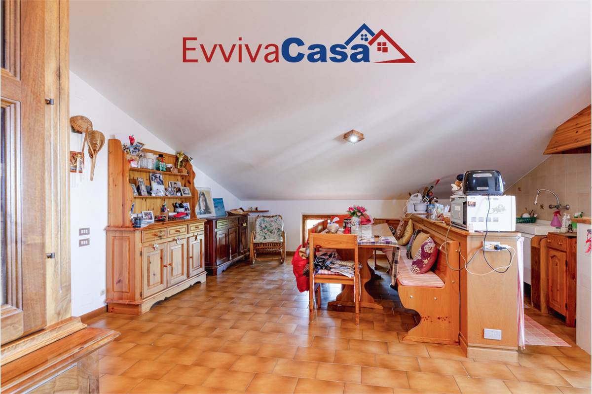 Una comoda scala in legno ci porta alla mansarda, uno spazio versatile e vivibile: qui troverai una zona relax con camino un balcone, altre due stanze, un bagno e un ripostiglio e un terrazzo a tasca con una vista eccezionale!