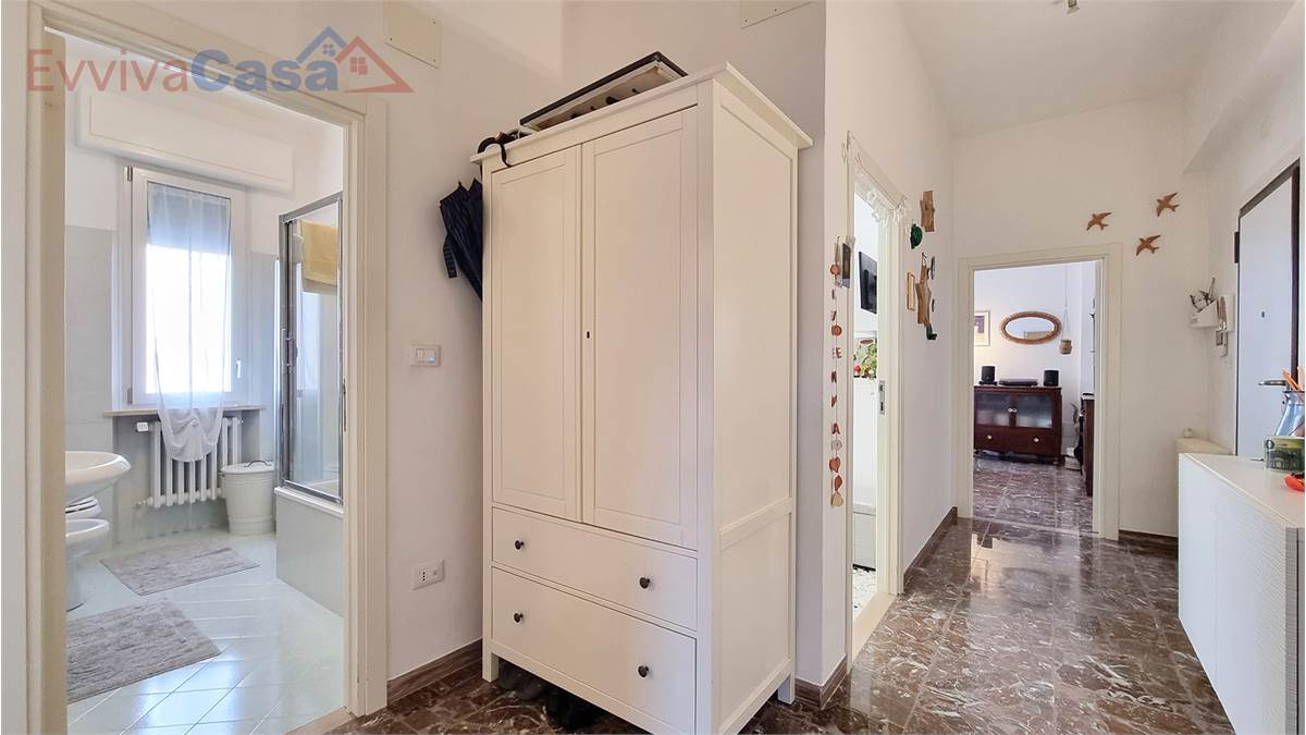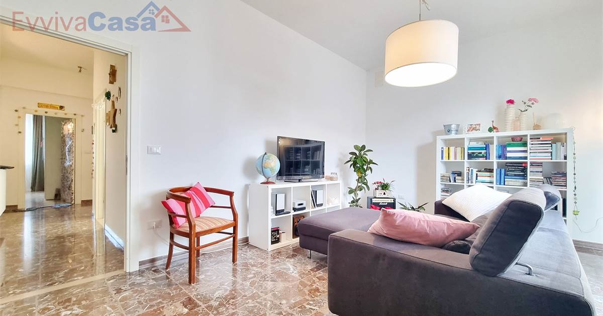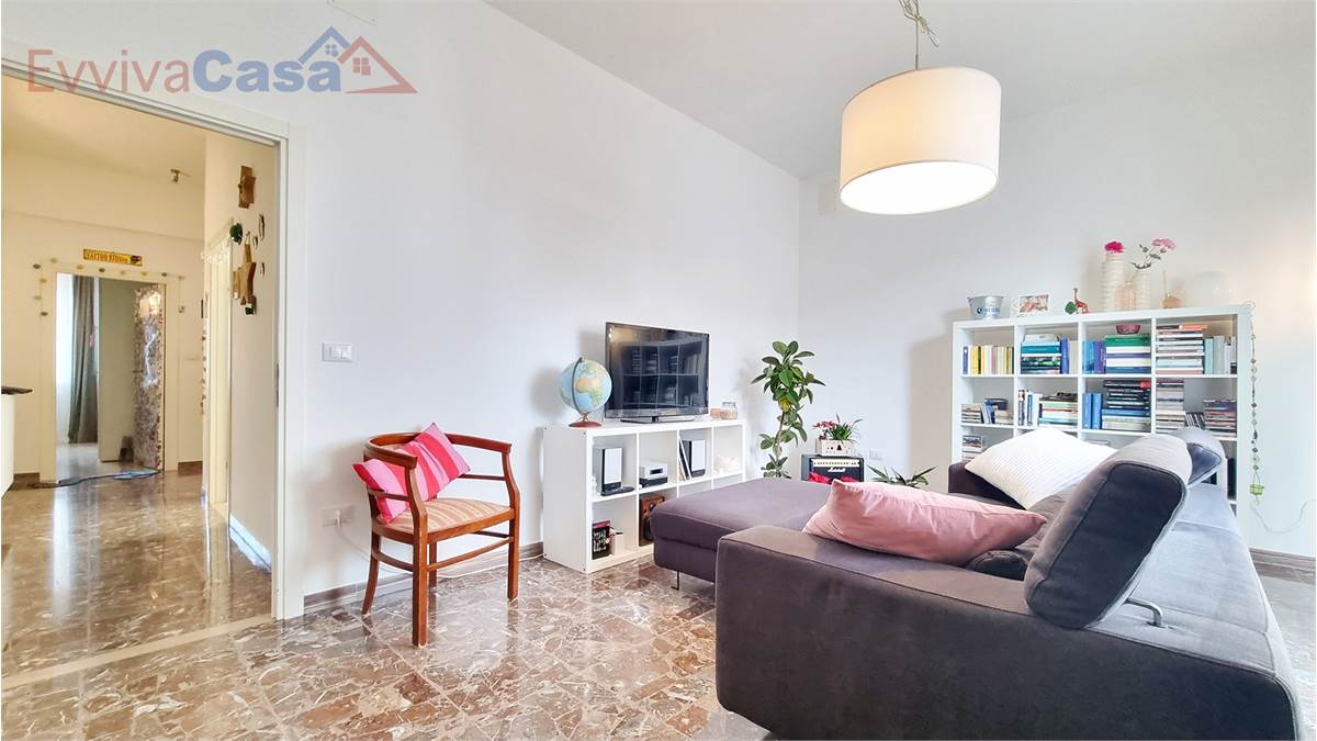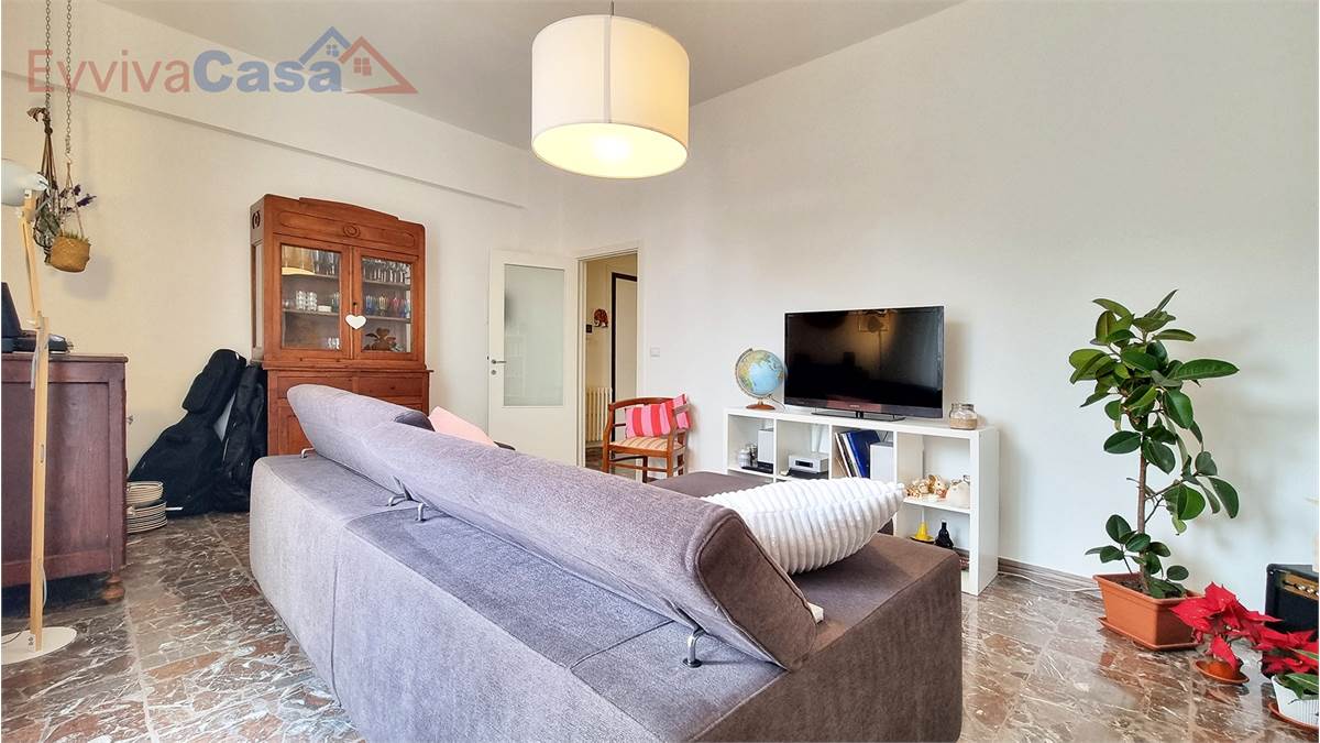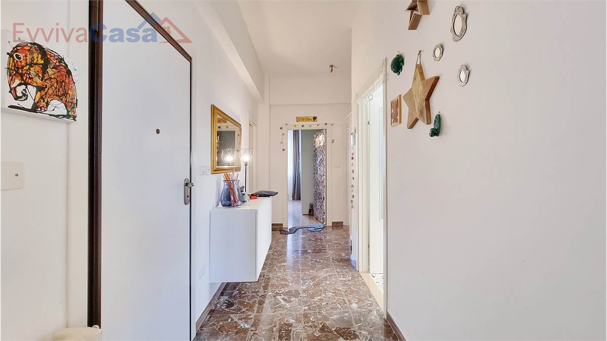 L’ingresso accompagna naturalmente verso la zona giorno, dove il salone ampio e luminoso si apre sul balcone, uno spazio che invita a fermarsi e respirare.