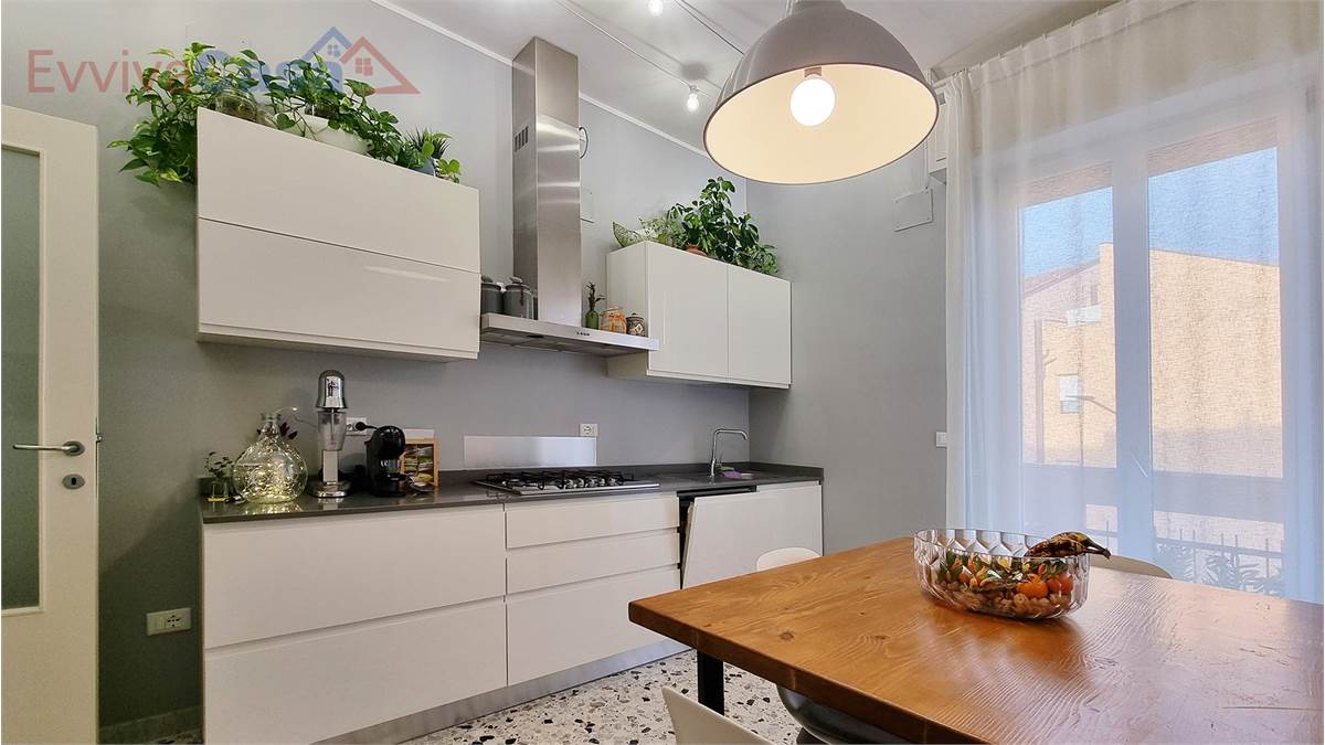 La cucina è abitabile e dispone di balcone, un ambiente separato e pratico, pensato per la quotidianità.